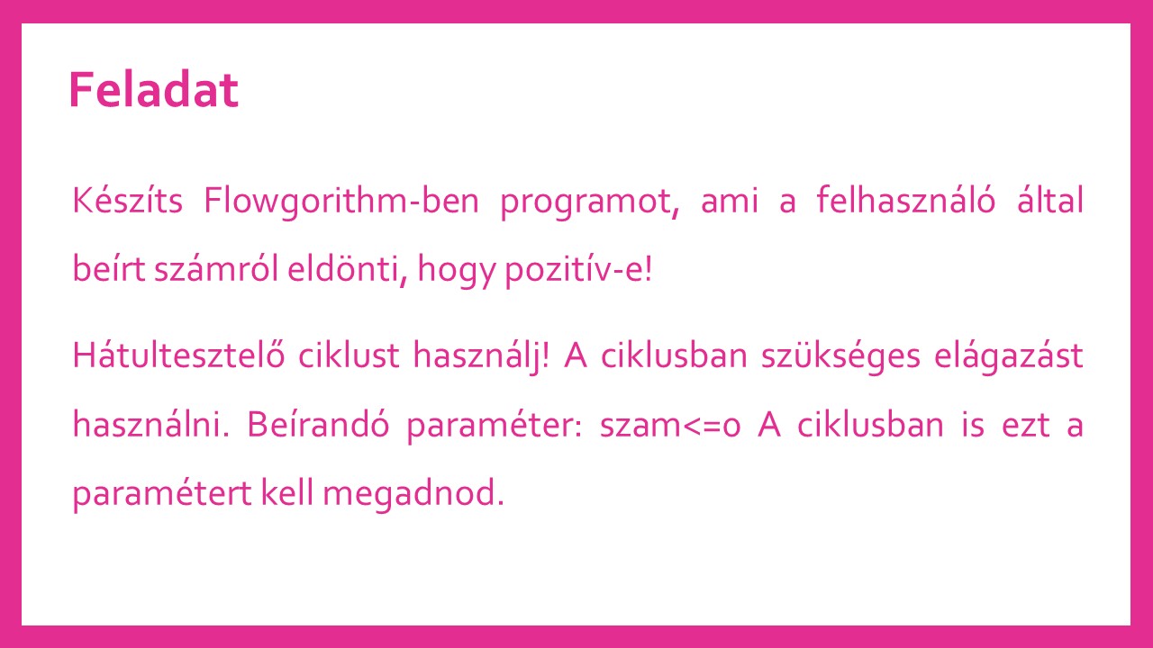 A mai órán két feladatot kell elkészítenetek. Mindkettő ciklusokat használ. Ezt tanultuk az előző órán. Az első feladat másolás lesz. Nézzétek meg az alábbi videót, majd készítsétek el a videóban látott programot! A második feladat önálló átgondolást igényel. Jó munkát kívánok!